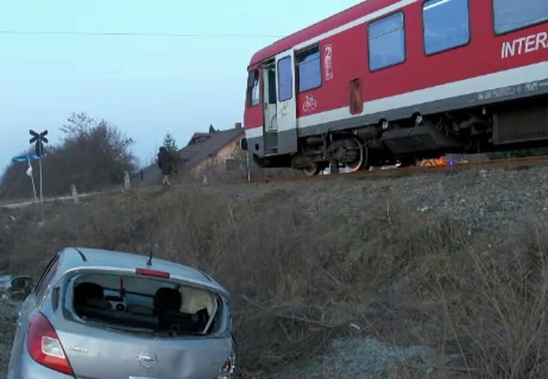 O mașină a fost lovită de tren. Șoferul nu a oprit la trecere